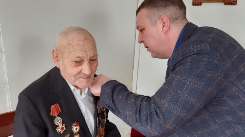 Минзәләдә гомер итүче Бөек Ватан сугышы ветераны Николай Петрович Макаровка "Бөек Җиңүгә 75 ел" юбилей медален Минзәлә район башкарма комитеты җитәкчесе урынбасары Дмитрий Чухланцев тапшырды.