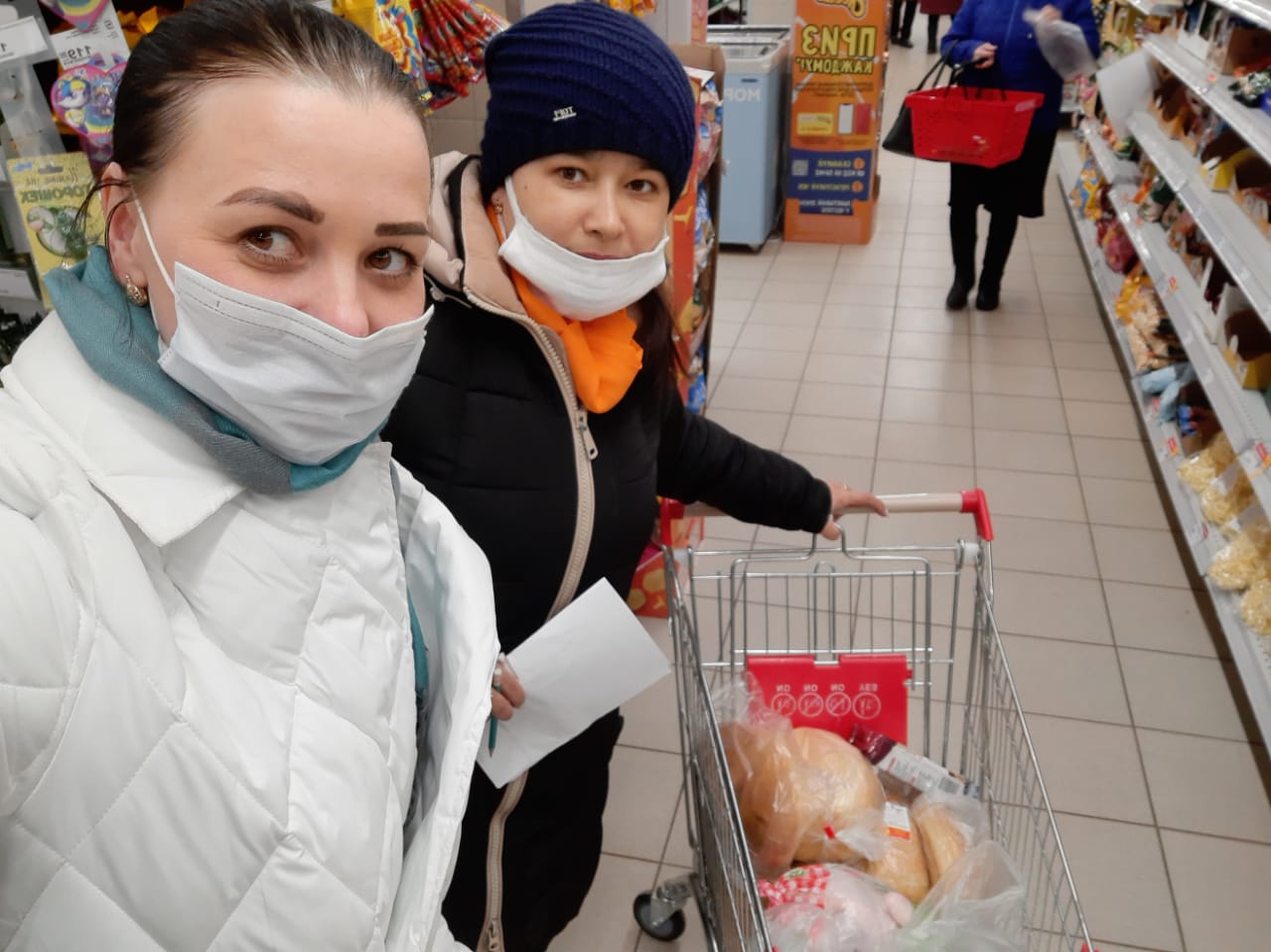 Өйдә хезмәт күрәтү белгечләре Чулпан Бадина, екатерина Чигвинцеева оператив төстә продуктлар сатып алып тапшырдылар.
