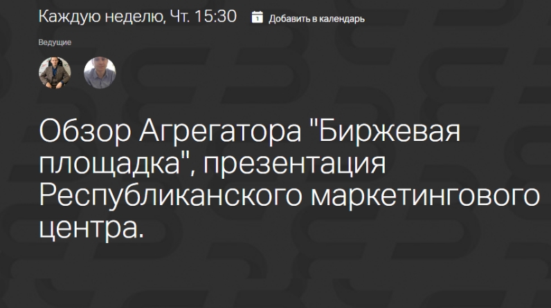 Кече бизнеска китереп бирү бизнесына керүне тәэмин итү, Республика Маркетинг үзәге ресурсларын кулланып Икътисад министрлыгы вәкилләре белән берлектә сатып алуларны урнаштыруны тәэмин итү өчен атна саен (һәр пәнҗешәмбе көнне) өйрәтү семинарлары уздырыла. Вебинарларда теләсә кем катнаша ала. Теркәлү өчен сылтама https://events.webinar.ru/agzrt/rmcrt?.