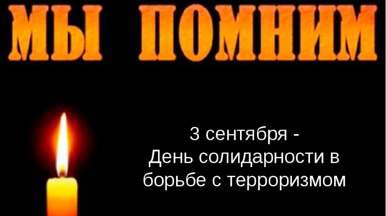 3 сентябрь – Россия календарендә истәлекле көн. Бу көнне россиядә Бесланга террористик атака корбаннарын искә алалар һәм күпмилләтле халкыбыз кайчан да булса очрашкан террористик агрессиянең барлык корбаннары истәлегенә башларын ияләр.