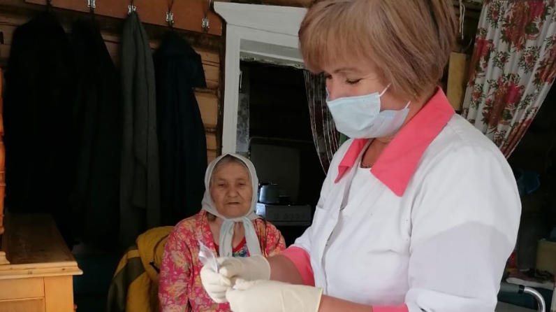 Минзәлә муниципаль районында халыкка социаль ярдәм күрсәтү комплекслы үзәге сәламәтлек саклау учреждениесе белән берлектә социаль хезмәтләр алучыларга иммунизациянең файдасы турында агитация алып бара.