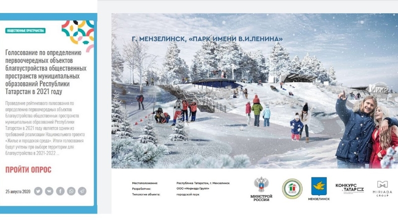 Хөрмәтле минзәләлеләр! Исегезгә төшерәбез, 2020 (2021-2022) уңайлы шәһәр мохите булдыруга иң яхшы проектларга Бөтенроссия конкурсына Минзәлә шәһәреннән "Ленин исемендәге парк" проекты тәкъдим ителде.