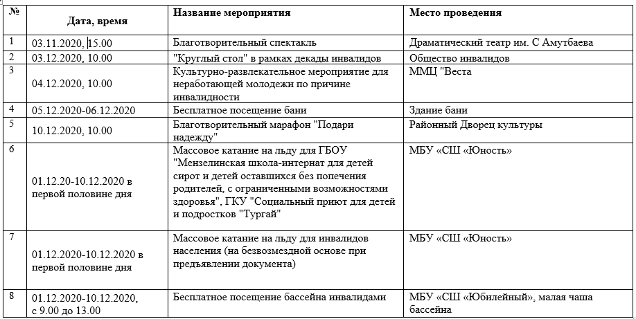 Декабрь башы традиция буенча Сәламәтлеге буенча мөмкинлекләре чикләнгән кешеләр декадасы буларак билгеләп үтелә. Ул 1993 елдан БМО карары буенча Халыкара инвалидлар көненә багышланган, 3 декабрьдә билгеләп үтелә.