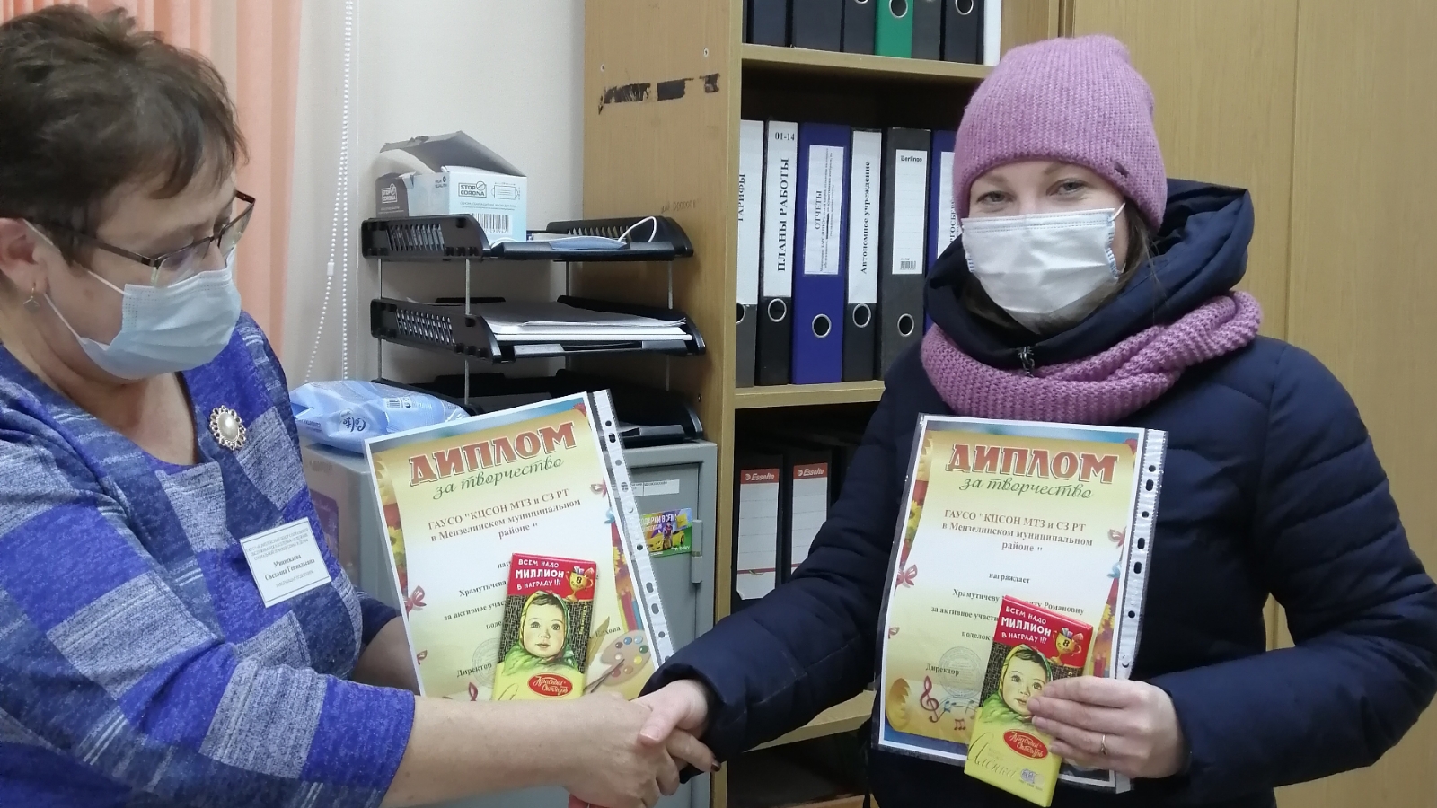 Минзәлә халыкка социаль ярдәм күрсәтү комплекслы үзәге уздырган "Әниләр көненә открытка" конкурсы нәтиҗәләре буенча, дипломнар һәм татлы презентлар тапшырылды.