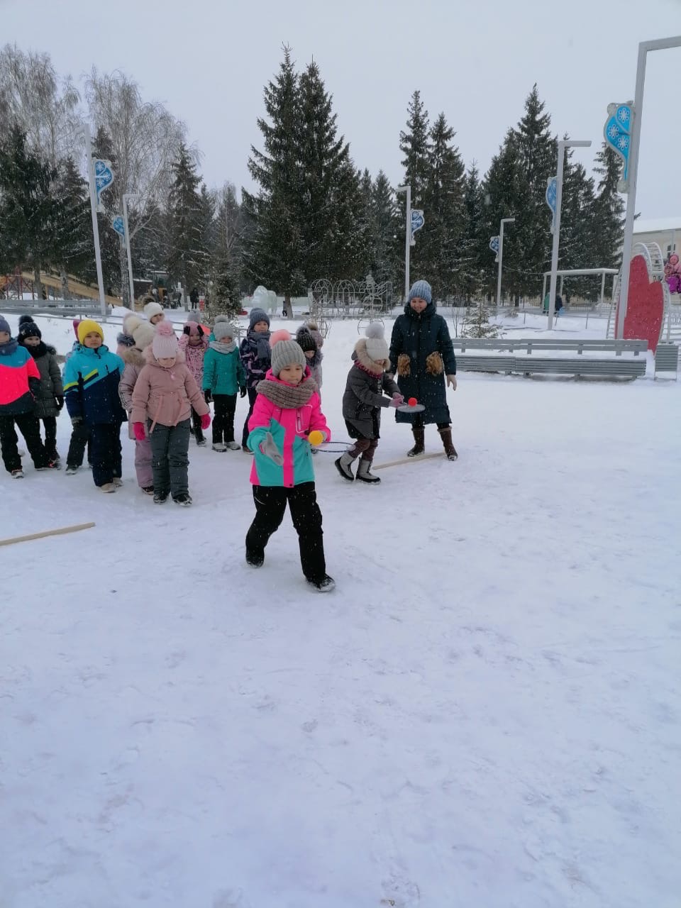Балалар Олимпия факелы, чанада узышу, хоккейчылар кебек уеннарда бик теләп катнашты. Чара ахырында нәтиҗә ясалды. Һәр катнашучыга татлы бүләкләр тапшырылды.