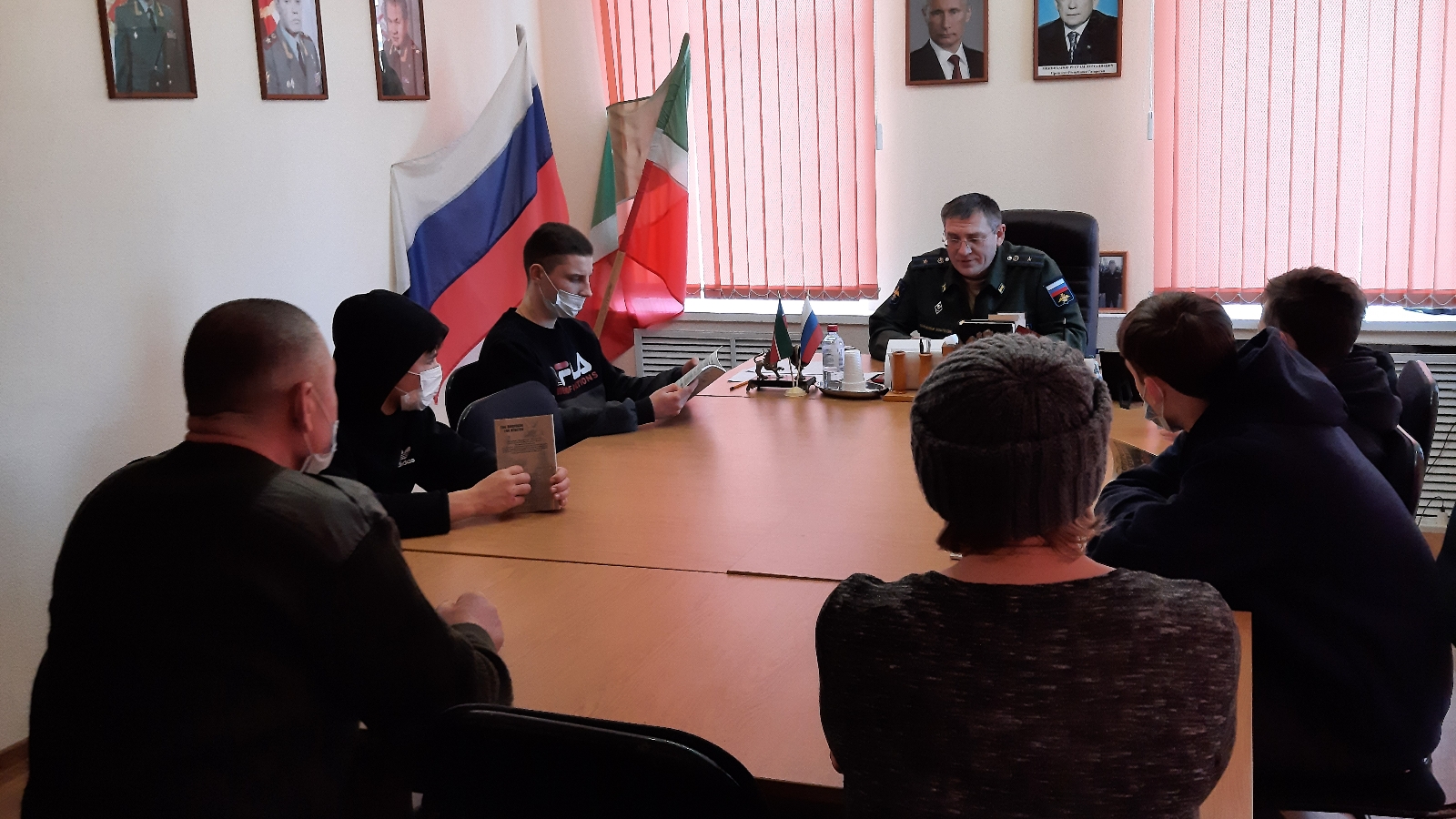 "Ватан синнән башлана" һөнәри ориентация аша патриотик тәрбия бирү буенча программаны гамәлгә ашыру кысаларында. балигъ булмаган үсмерләр Минзәлә районы халыкка социаль ярдәм күрсәтү комплекслы үзәгенең гаилә белән эш буенча белгечләре Ольга Бывальцева һәм Наталия Кудряшова белән берлектә Минзәлә хәрби комиссариатында булдылар.