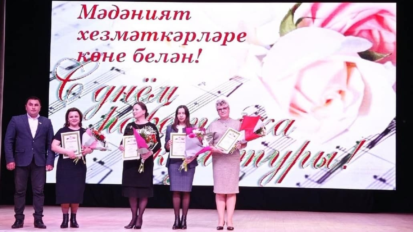 Сәхнәгә мәдәният тармагында намуслы һәм тырыш хезмәт куючылар күтәрелде. Аларны район башлыгы урынбасары Наил Хисамбиев тәбрик итеп куйган хезмәтләре өчен тирән рәхмәтен җиткерде. Районыбызда нинди генә чара үтмәсен, аны мәдәният хезмәткәрләре чыгышыннан башка күз алдына да китерү авыр.