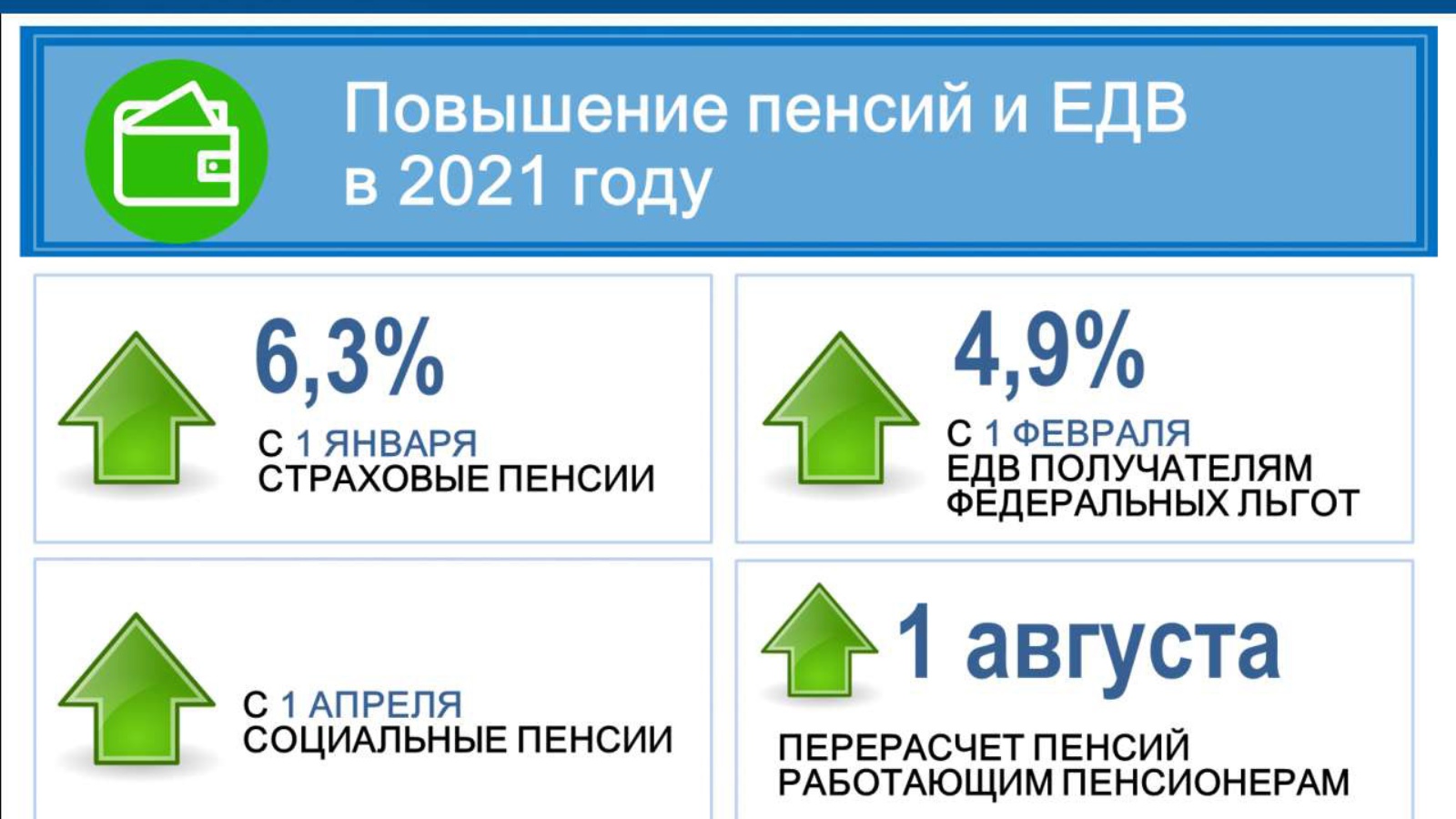 Дәүләт пенсия тәэминаты буенча пенсияләр, шул исәптән, социаль пенсияләр ел саен 1 апрельдән алдагы ел өчен Россия Федерациясендә пенсионерның яшәү минимумы үсеше темпларын исәпкә алып индексацияләнә.