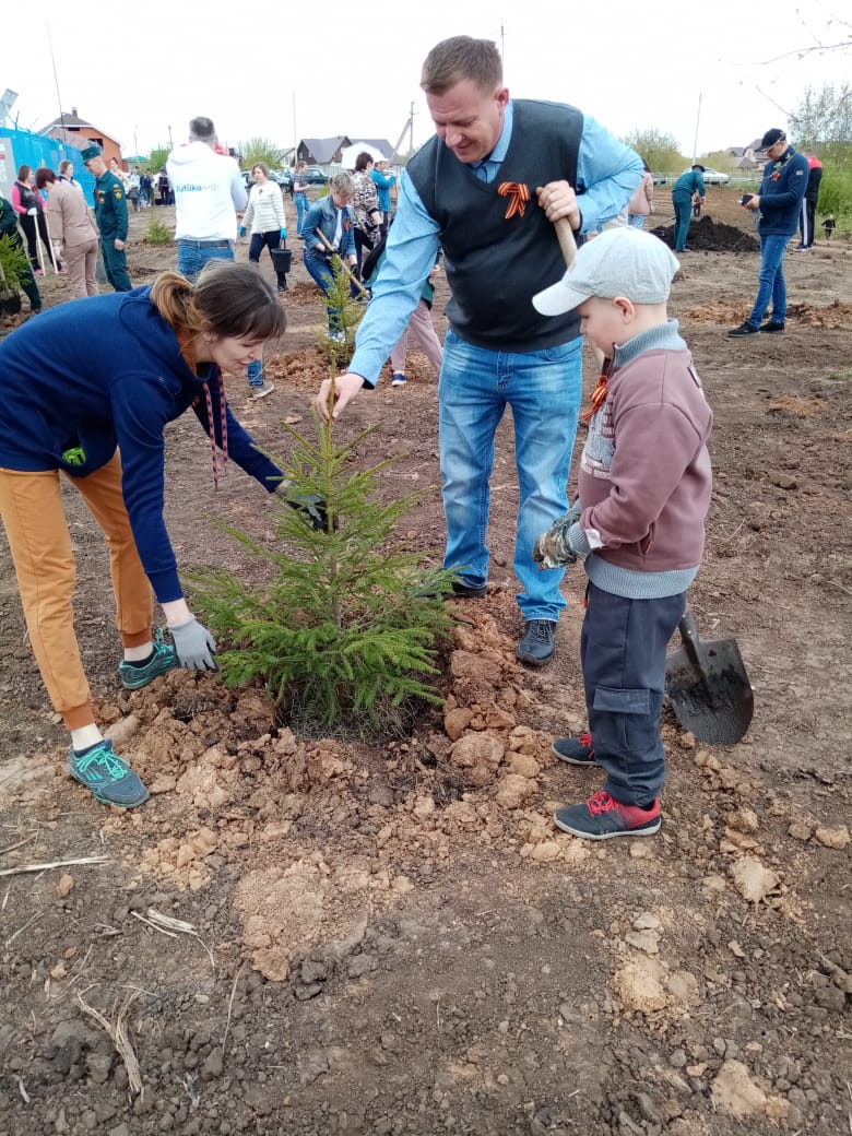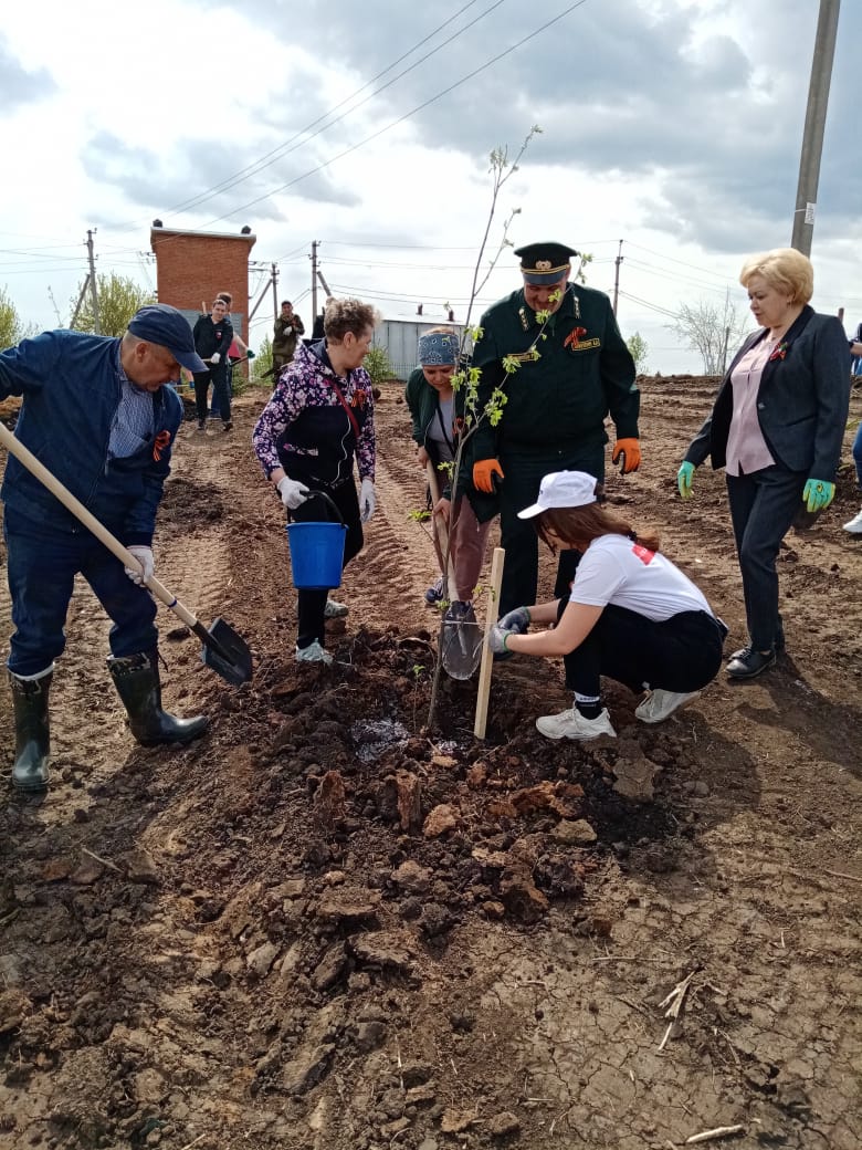 Бүген район башлыгы Айдар Сәлахов, шәһәр оешмалары җитәкчеләре Бөек Ватан сугышында Җиңүнең 76 еллыгына багышланган "Хәтер бакчасы" утырттылар. 76 миләш һәм чыршы үсентесе утырттылар.