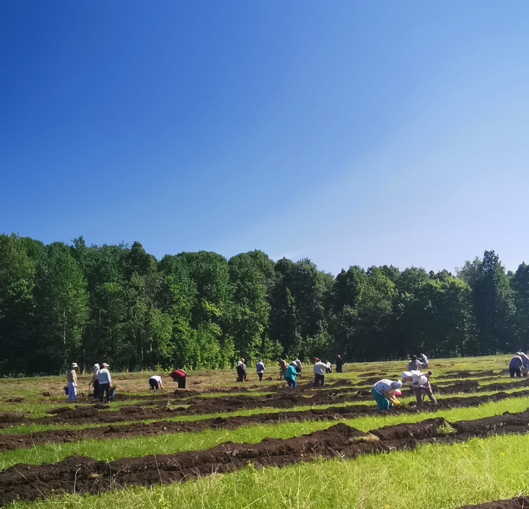 -Урман хуҗалыгы шәһәр территориясендә утырту өчен үсентеләр бирә. Ә без үз чиратыбызда аларга ярдәм итәргә алындык һәм бүгенге акциядә бик теләп катнашабыз.
