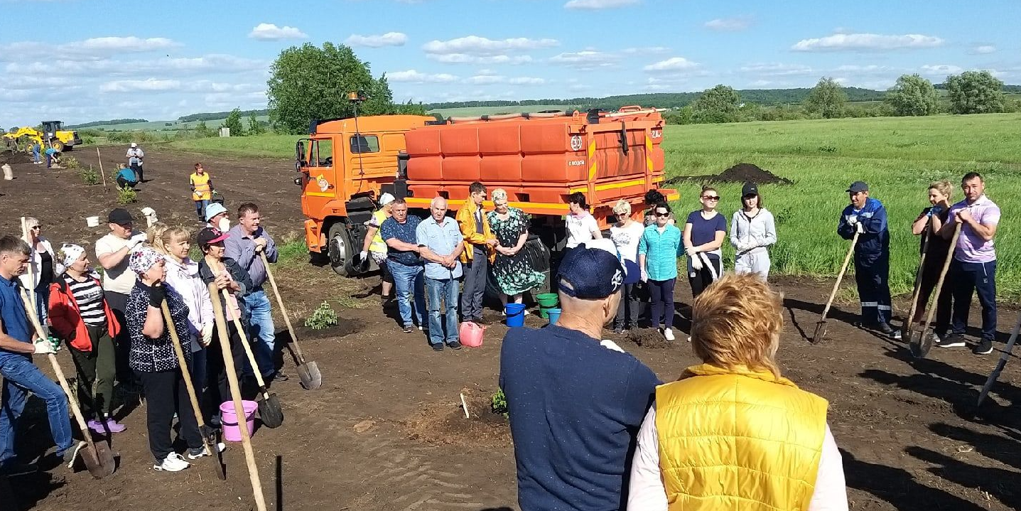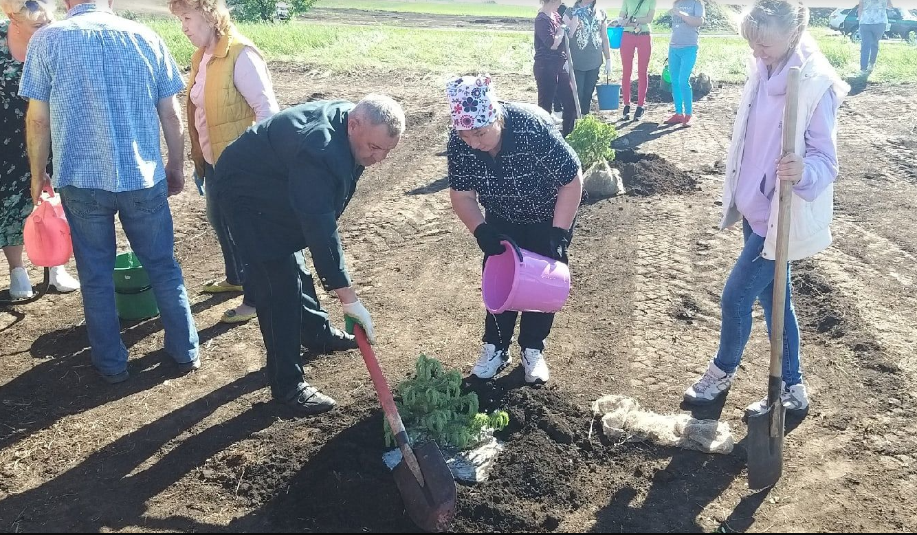 Агач утыртуда шәһәрнең барлык учредениеләре җитәкчеләре катнашты. Эш башланыр алдыннан район Башкарма комитеты җитәкчесе Камил Нәҗмиев район башлыгы Айдар Сәлахов инициативасын хуплавын белдереп, замана кешеләре алдында игелекле бурыч - Бөек Ватан сугышы кырларында ятып калган һәр якташыбыз истәлегенә бер агач утырту турында искәртеп узды.