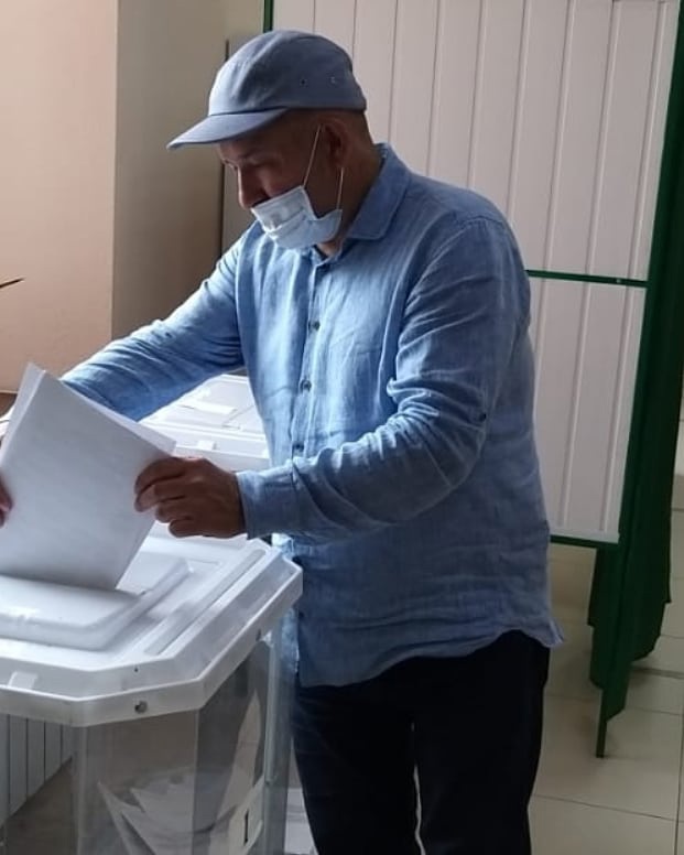 Минзәләдә беренчеләрдән булып район башлыгы Айдар Сәлахов тавыш бирде.
