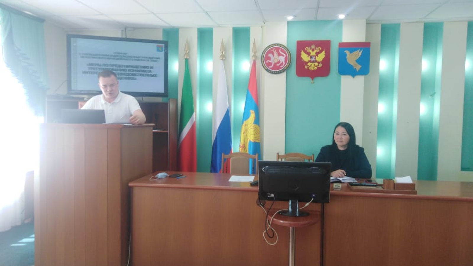 Минзәлә районында "Ведомство карамагындагы учреждениеләрдә мәнфәгатьләр каршылыгын булдырмау һәм җайга салу буенча чаралар" темасына семинар узды. Аны район башлыгы ярдәмчесе Марк Токарев һәм район Советы аппараты җитәкчесе вазыйфаларын башкаручы Аида Биктимерова алып барды.