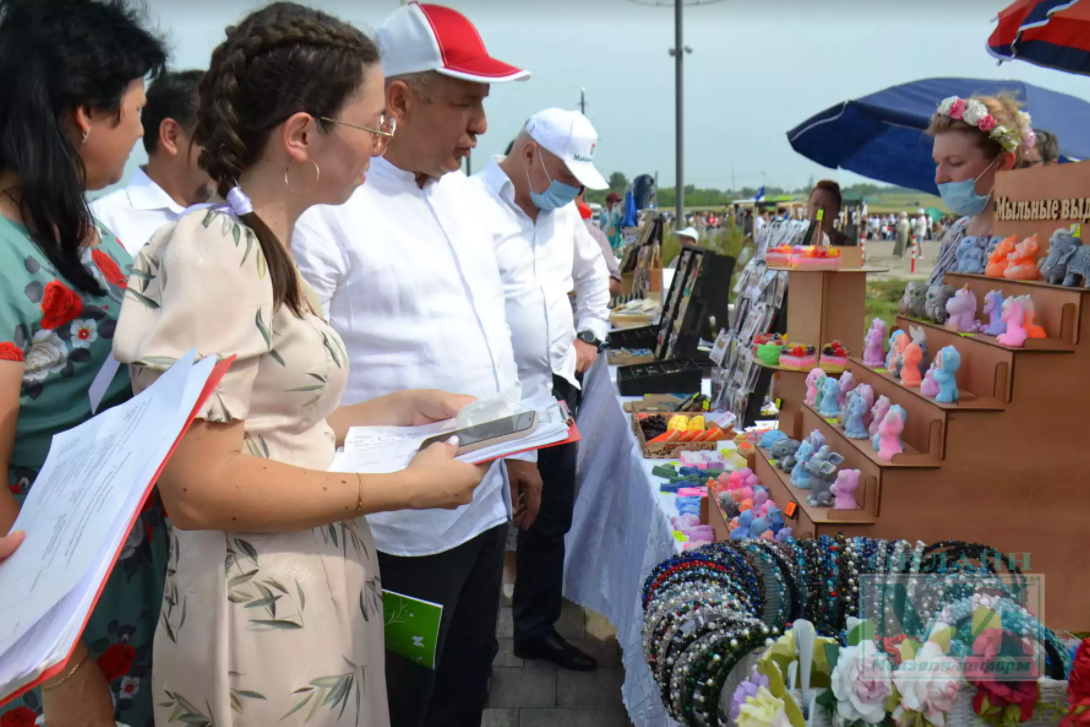 Район башлыгы Айдар Салахов һәм фестиваль кунаклары-РФ Дәүләт Думасы депутаты Әлфия Когогина, ТР Дәүләт Советы депутаты Азат Хамаев, Татарстан Халыклары ассамблеясе Советы Рәисе урынбасары Гали Хәсәнов төрле төбәкләрдән килгән кул эшләре һәм иҗат осталарының күргәзмәләре белән таныштылар, мастер-класслар карадылар. Аннары фестивальдә катнашучыларны һәм яшьләрне Яшьләр көне белән котладылар.