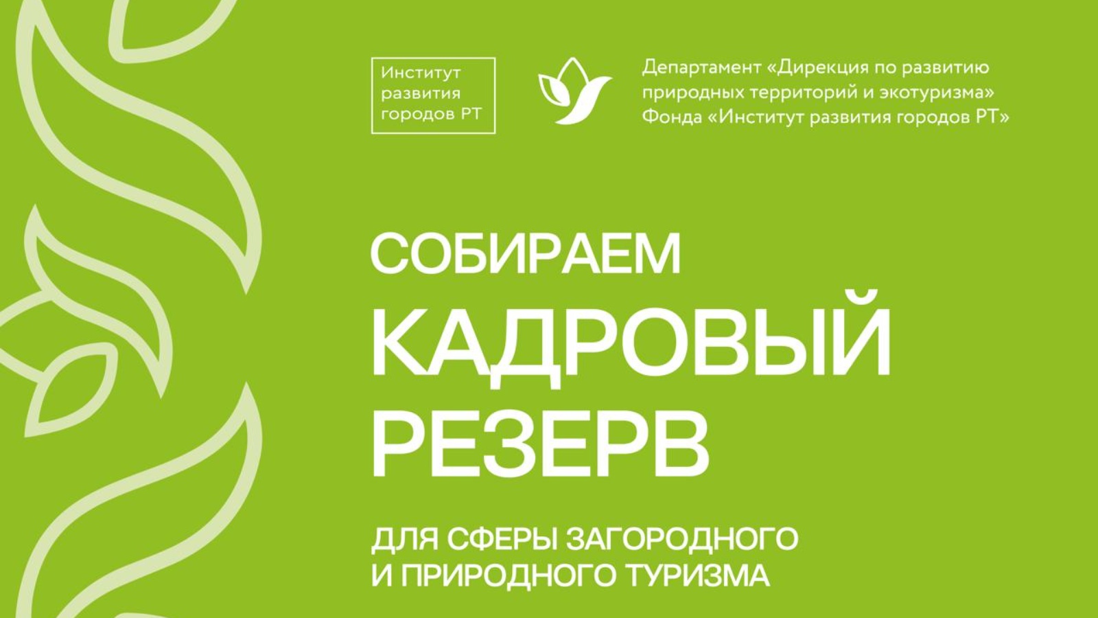 "Шәһәр читендә һәм табигый туризм өлкәсе өчен Кадрлар резервы" - Татарстанда шәһәр яны ялының тиз үсүче индустриясе өчен белгечләр әзерли торган яңа республика проекты. Оештыручылар - «Татарстан Республикасы шәһәрләрен үстерү институты» фондының «табигый территорияләрне һәм экотуризмны үстерү дирекциясе»департаменты.