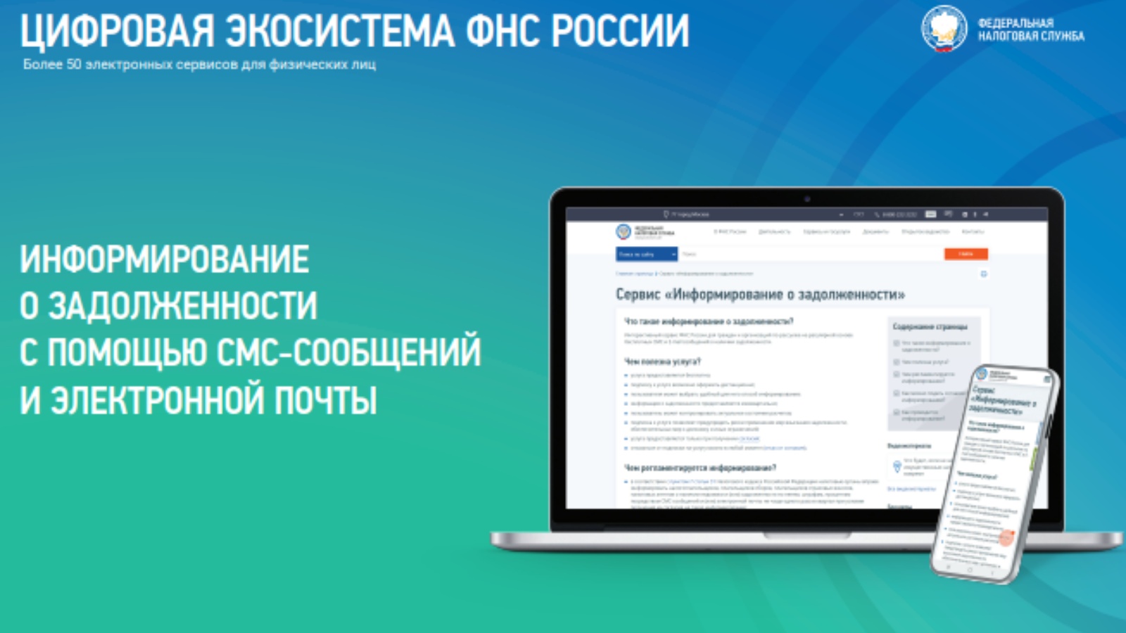 Мондый мәгълүмат форматы салым түләүчегә мәҗбүри түләүләр түләү буенча исәп-хисапларның агымдагы торышын үз вакытында күзәтеп торырга һәм пенялар исәпләүгә юл куймаска мөмкинлек бирә. Смс-һәм e-mail-мәгълүмат бирүнең өстенлеге шулай ук мәгълүматларның актуальлеге булып тора, сервис агымдагы датага дөрес мәгълүмат бирә.