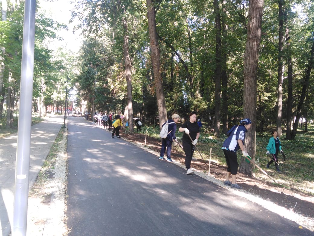 Бүген, 19 августта, минзәләлеләр Ленин исемендәге паркны җыештырырга чыктылар. Эш фронты зур иде: ир-атлар үлән чаптылар, хатын-кызлар ботаклар, чүп-чар җыйдылар, үләнне өемнәргә җыеп, юллар себерделәр, җирне тигезләделәр.