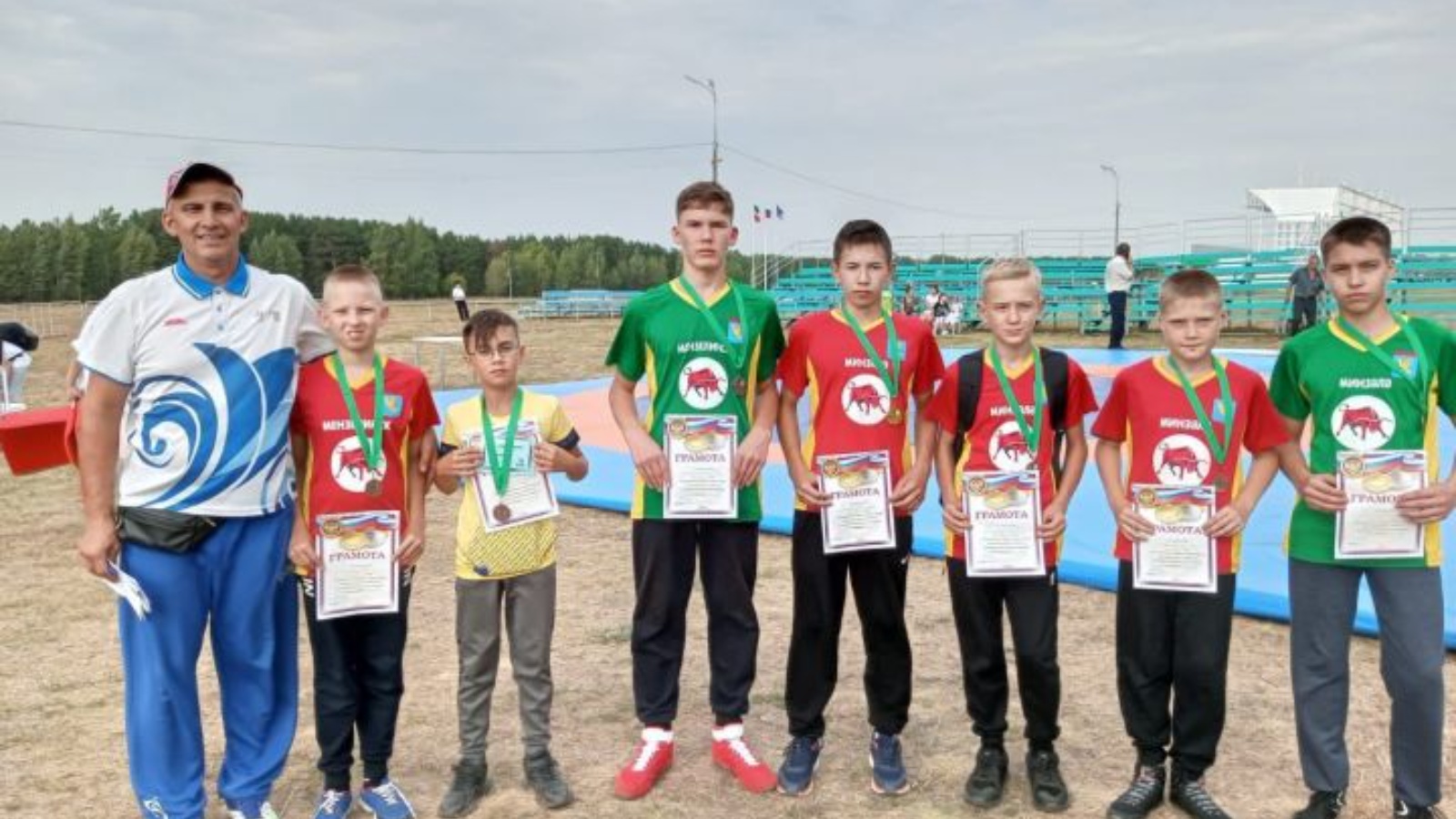 Көрәш буенча тренер Рәмзил Бәдриевның 12 тәрбияләнүчесе 2005 елгы, 2006-2008 елгы, 2009-2010 елгы егетләр арасында 2022 елның 30 августында Чаллы шәһәрендә шәһәр ипподромы мәйданында узган Татарстан Республикасы көненә багышланган Көрәш буенча республика турнирында катнаштылар.
