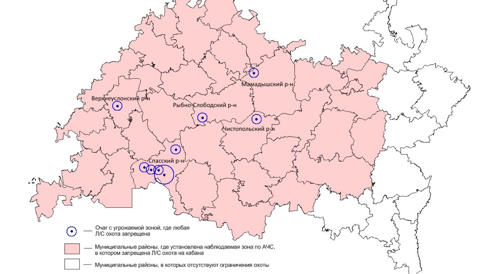 ТР Биоресурслар буенча дәүләт комитеты искә төшерә: республика территориясендә африка дуңгыз түләмәсе вирусы ачыклану сәбәпле, Татарстан Республикасы Президенты Указлары белән кайбер районнарда республиканың аерым аучылык биләмәләрендә һәвәскәрләр һәм спорт авын тыю һәм карантин урнаштырылган.
