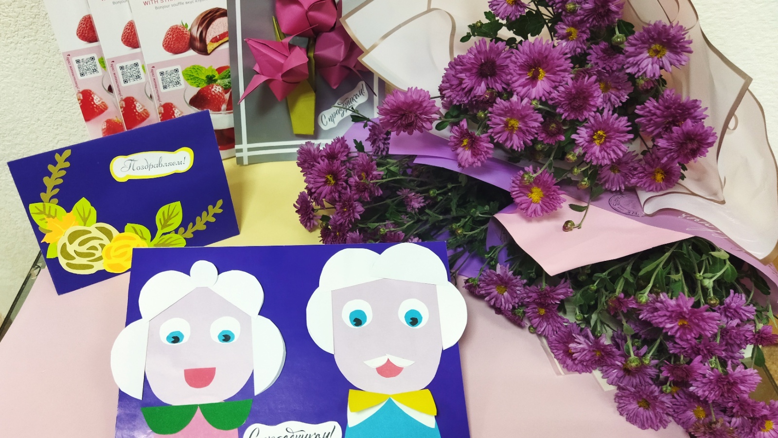 Очрашу барышында балалар әби-бабайларны бәйрәм белән котладылар, үз куллары белән ясалган сувенирлар тапшырдылар. Һәркем үз бүләген үзенчәлекле, эксклюзив итәргә тырышты. Ә ветераннар исә яшьлегеннән истәлекләр белән уртаклаштылар, авыр сынау елларында күпмилләтле совет халкының батырлыгы турында сөйләделәр.