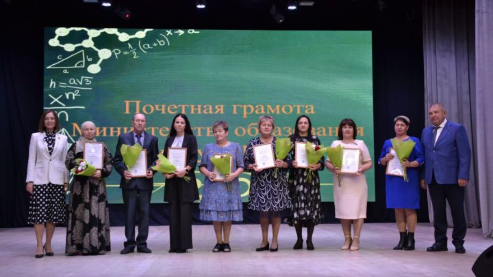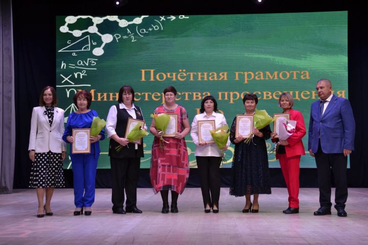 Район мәгариф бүлеге начальнигы Леонид Петраев шулай ук район педагогларына намуслы хезмәтләре өчен чын күңелдән теләкләр һәм рәхмәт сүзләре җиткерде. Хезмәттә уңышларга ирешкән педагогларга грамоталар һәм Рәхмәт хатлары тапшырды.