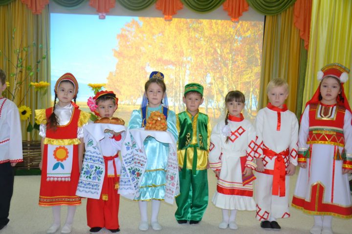 Төрле халыкларның матур, матур милли киемнәренә киенгән балалар да кунакларны төрле телләрдә сәламләделәр. Шулай ук татар язучысы Габдулла Тукай әкияте мотивлары буенча сәхнәләштерүне дә күрсәттеләр.
