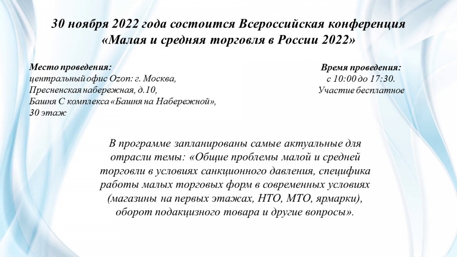 "Россиянең кече һәм урта сәүдәсе 2022"Бөтенроссия конференциясе