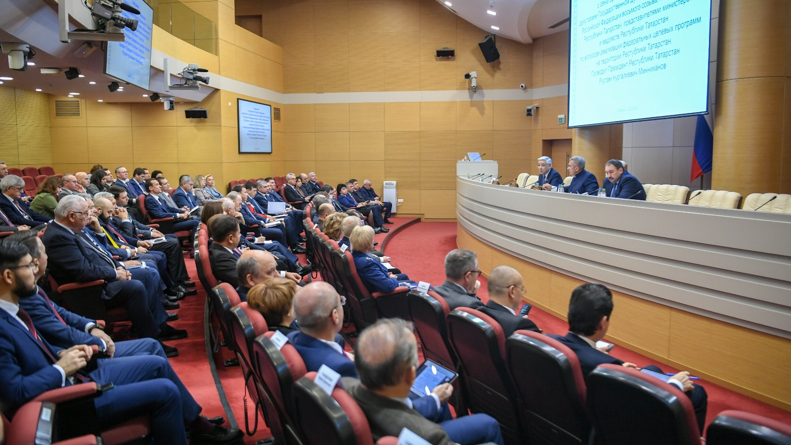Утырышта ТР Дәүләт Советы Рәисе Фәрит Мөхәммәтшин, ТР Премьер-министры Алексей Песошин, РФ сенаторлары һәм Дәүләт Думасы депутатлары, Татарстаннан сайланган министрлыклар һәм ведомстволар җитәкчеләре катнашты.