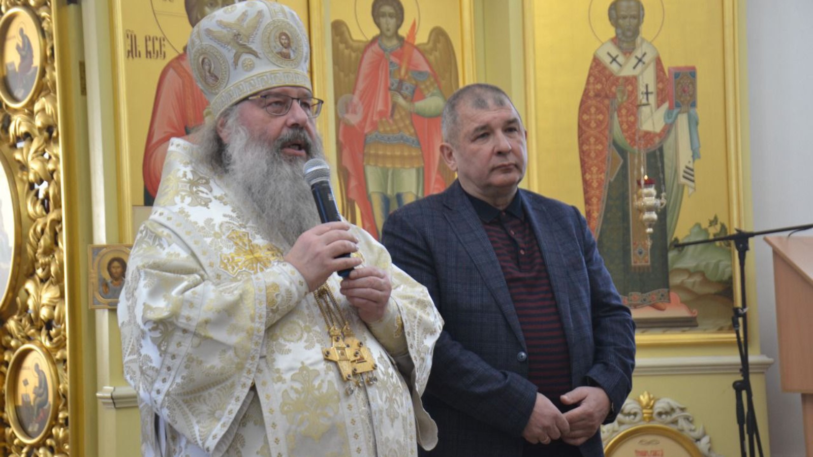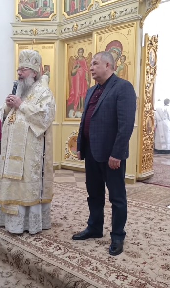 Айдар Фаслахович Минзәлә халкы исеменнән Владыкка Минзәлә символы – Екатерина күпере сурәтләнгән картинаны бүләк итте. Отец Роман әтисенә рәхмәт хаты тапшырылды.