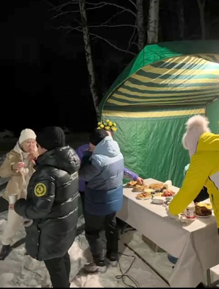 Бу спорт вакыйгасына килүчеләр өчен кайнар чәй һәм ризыкларга бай өстәл әзерләнде.