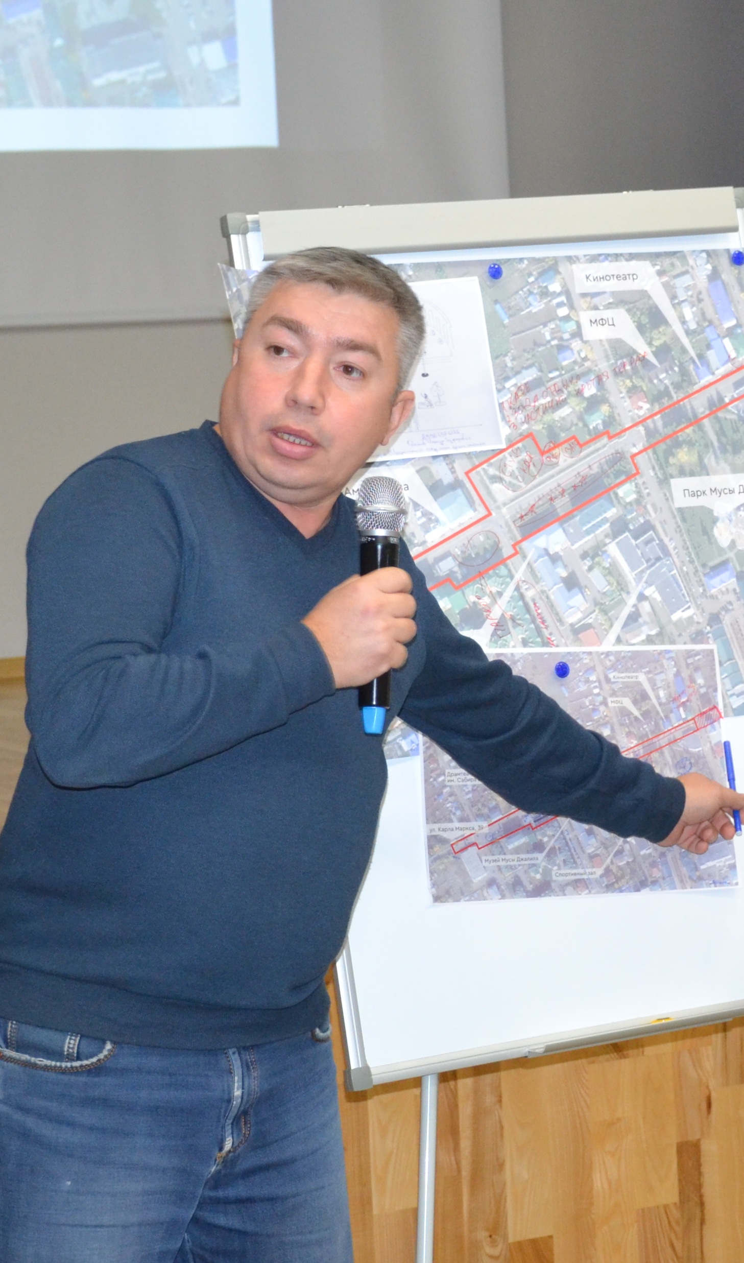 Район Башкарма комитеты җитәкчесе Марат Кәримов әлеге проектның шәһәр һәм район өчен мөһимлеген билгеләп үтте һәм биредә җыелганнарны фикер алышуда актив катнашырга чакырды.
