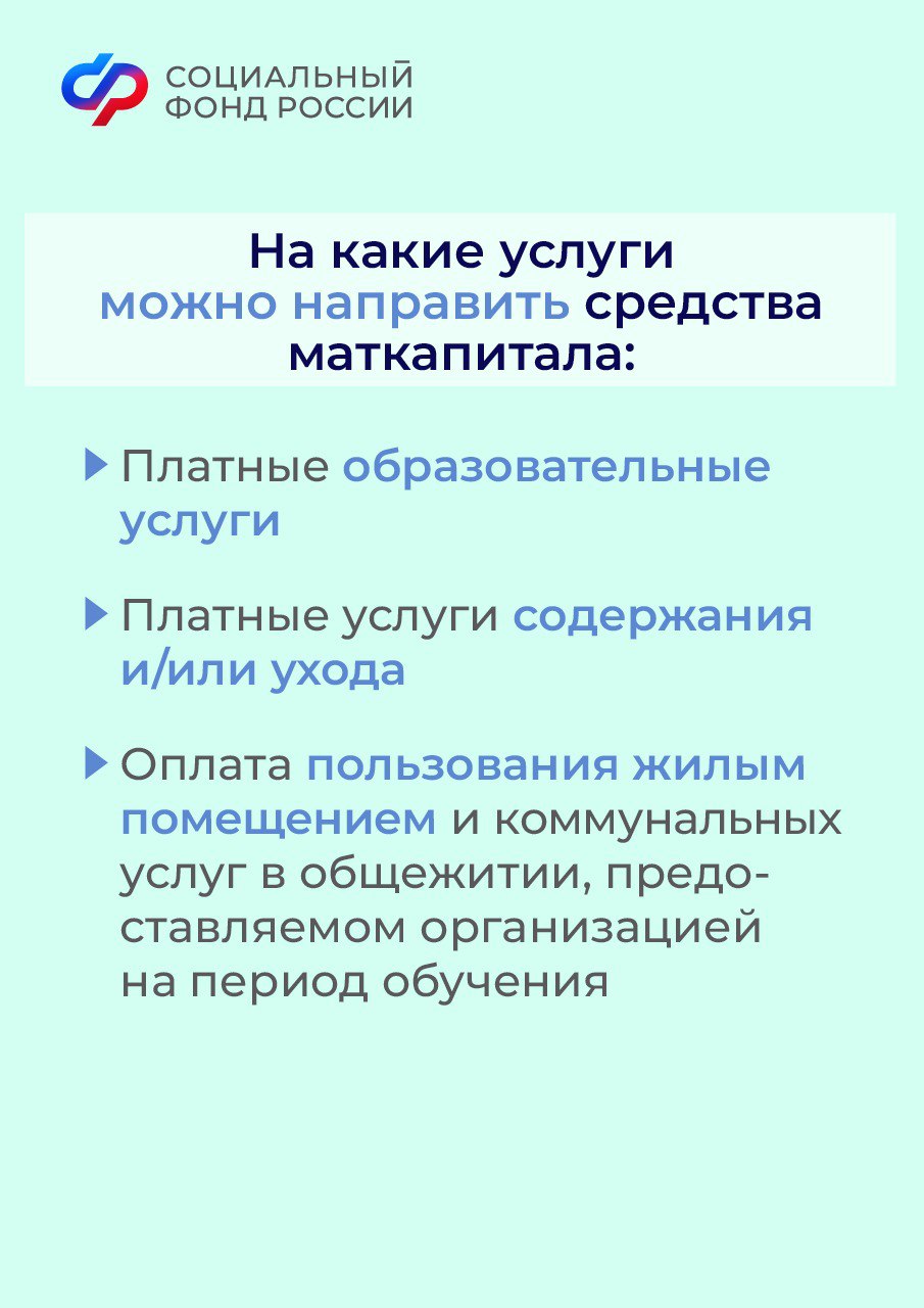 Без сезнең өчен нинди хезмәтләргә һәм нинди шартларда ана капиталы акчаларын мәгарифкә юнәлтү турында мәгълүмат әзерләдек.
