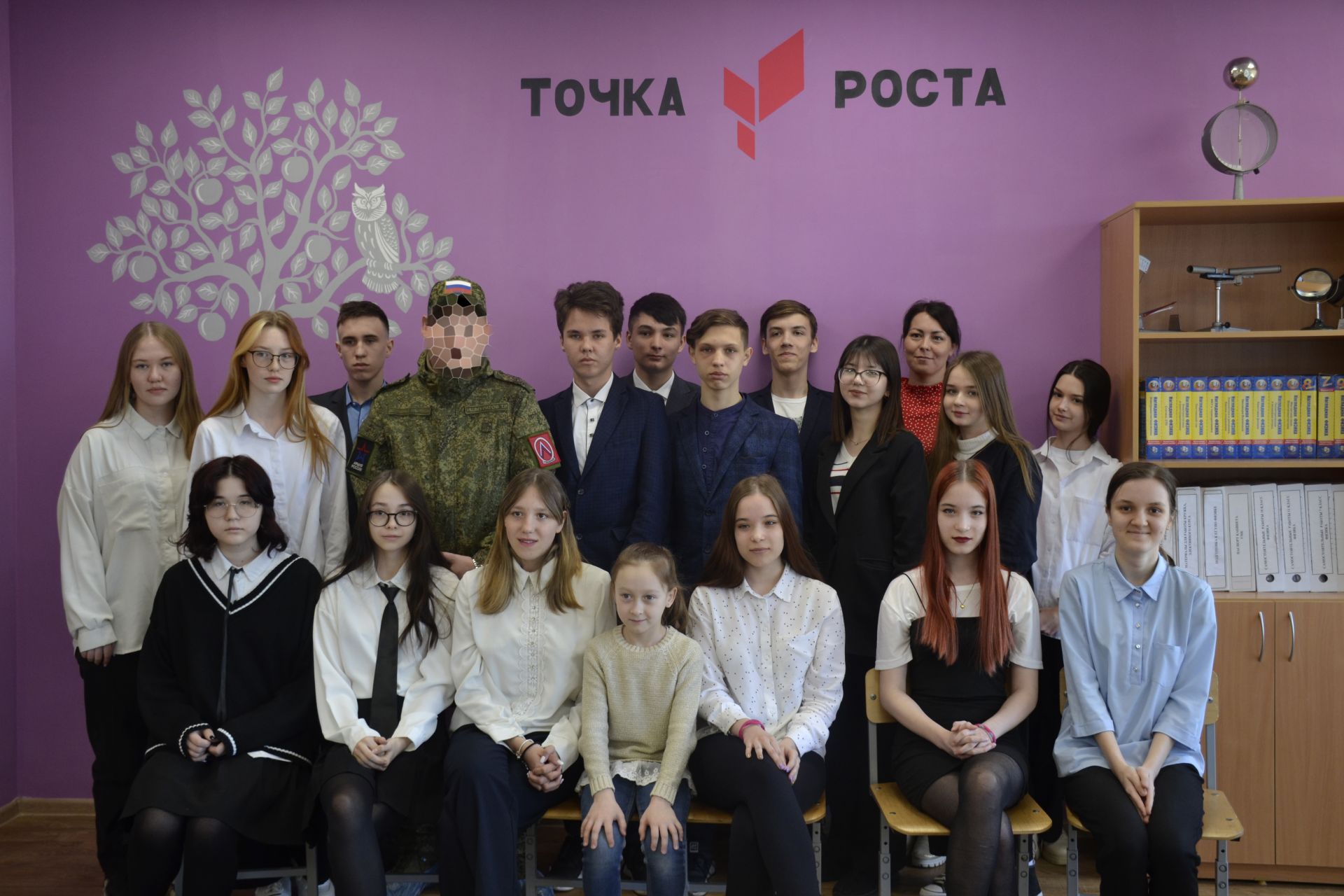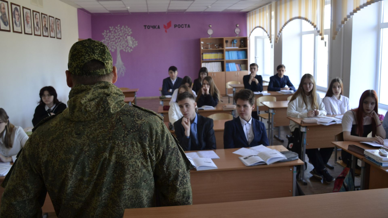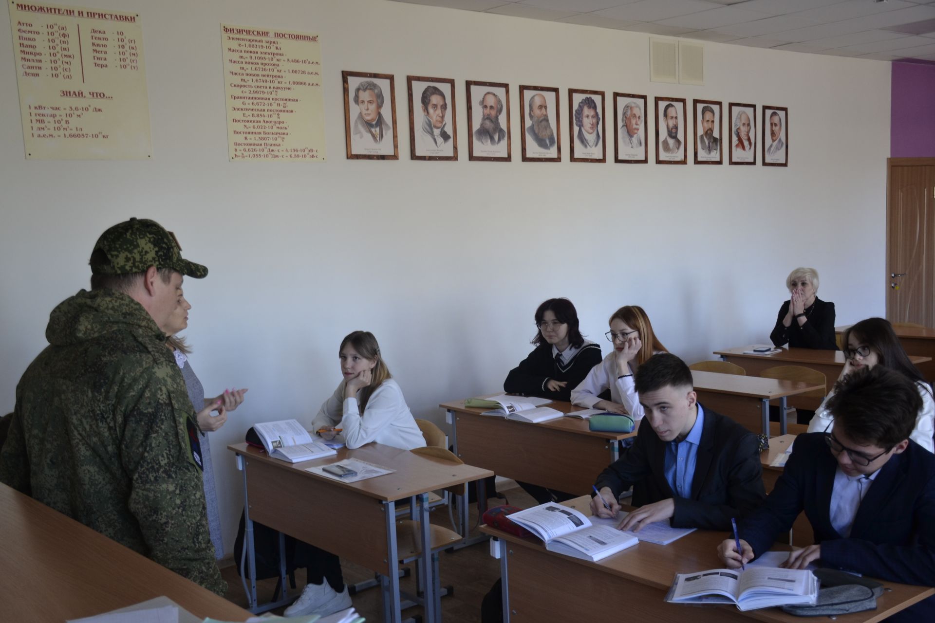Тимур 8а, 9а, 9б сыйныф укучыларына хәрби хезмәт турында җентекләп сөйләде. Балалар үз сорауларын бирделәр.
