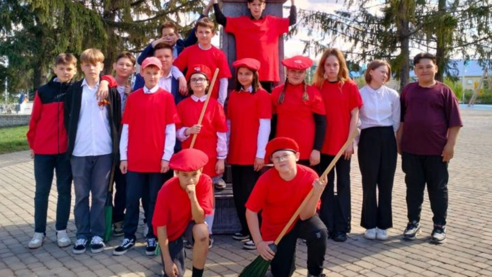 Бөек Җиңү бәйрәме алдыннан 2 нче урта гомуми белем бирү мәктәбенең юнармеецлары Муса Җәлил исемендәге паркта җыештырдылар. 6 нчы сыйныф укучылары кызыл футболкаларда, себеркеләр белән коралланып, брусчатканы себереп, чүп-чарны җыйдылар.
