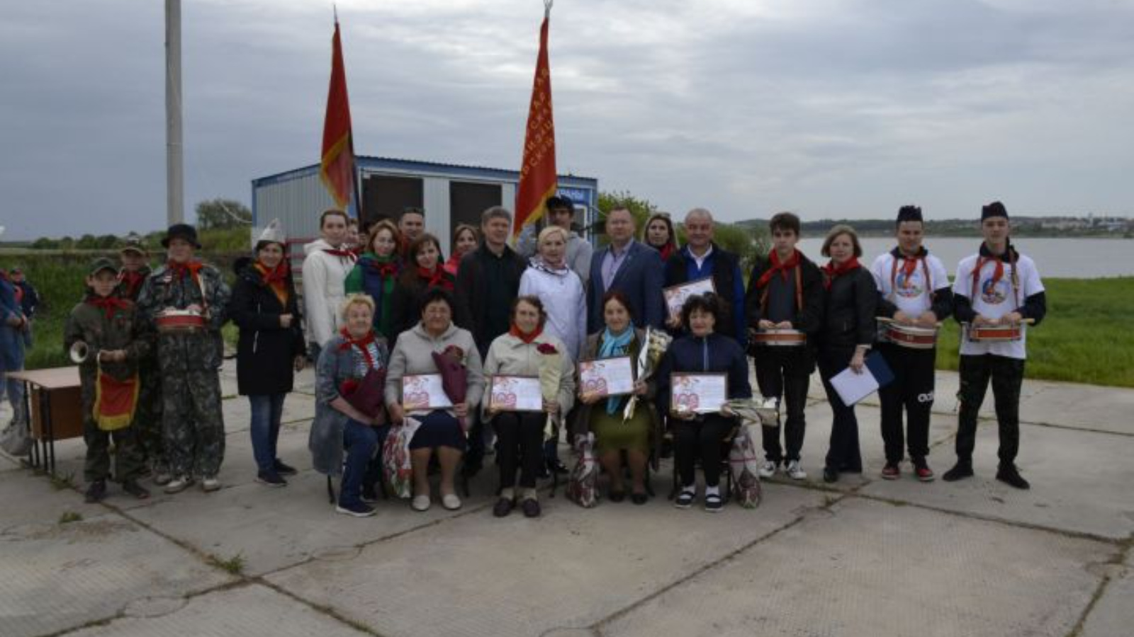 Төшке аштан соң район мәдәният сарае янында район мәктәпләреннән активистлар җыелды. Күпләрнең пионерларга хас булган атрибутлары бар: кызыл галстуклар, барабаннар, горналар.