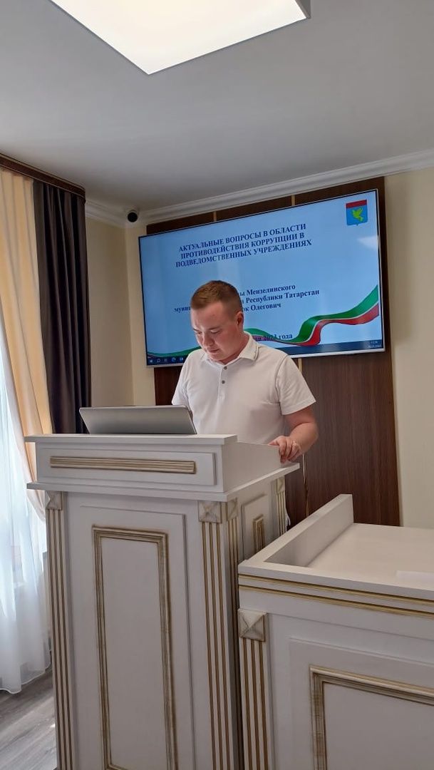 Татарстан Республикасы район башлыгы ярдәмчесе Марк Токарев ведомство карамагындагы учреждениеләрдә мөмкин булган мәнфәгатьләр конфликтын җайга салу чаралары турында сөйләде, шулай ук җитәкчеләргә коррупциягә каршы тору өлкәсендә федераль һәм республика законнарының төп нормаларын җиткерде.