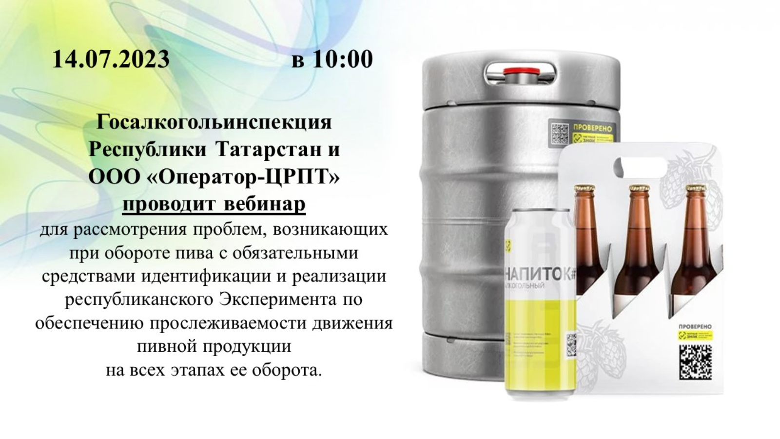 Сыра сатучы район эшкуарлары өчен Татарстан Республикасы Дәүләт алкоголь инспекциясе һәм "оператор-ЦРПТ" ҖЧҖ вебинар үткәрә.