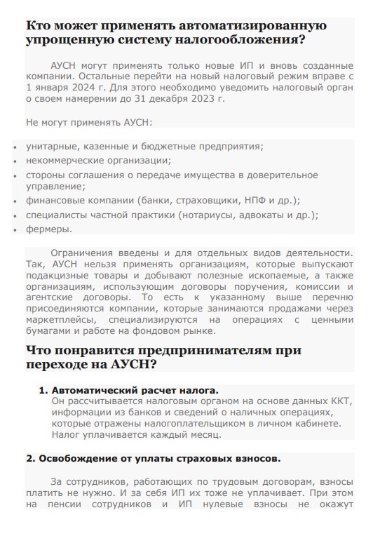 АУСН (автоматлаштырылган гадиләштерелгән салым системасы, автоупрощенка) 2022 елның 1 июленнән 25.02.2022 елгы №17– ФЗ номерлы закон белән гамәлгә кертелгән салым салуның яңа режимы. Әлегә ул вакыт һәм эшчәнлек төбәге буенча чикләү эксперименты рәвешендә кулланыла: