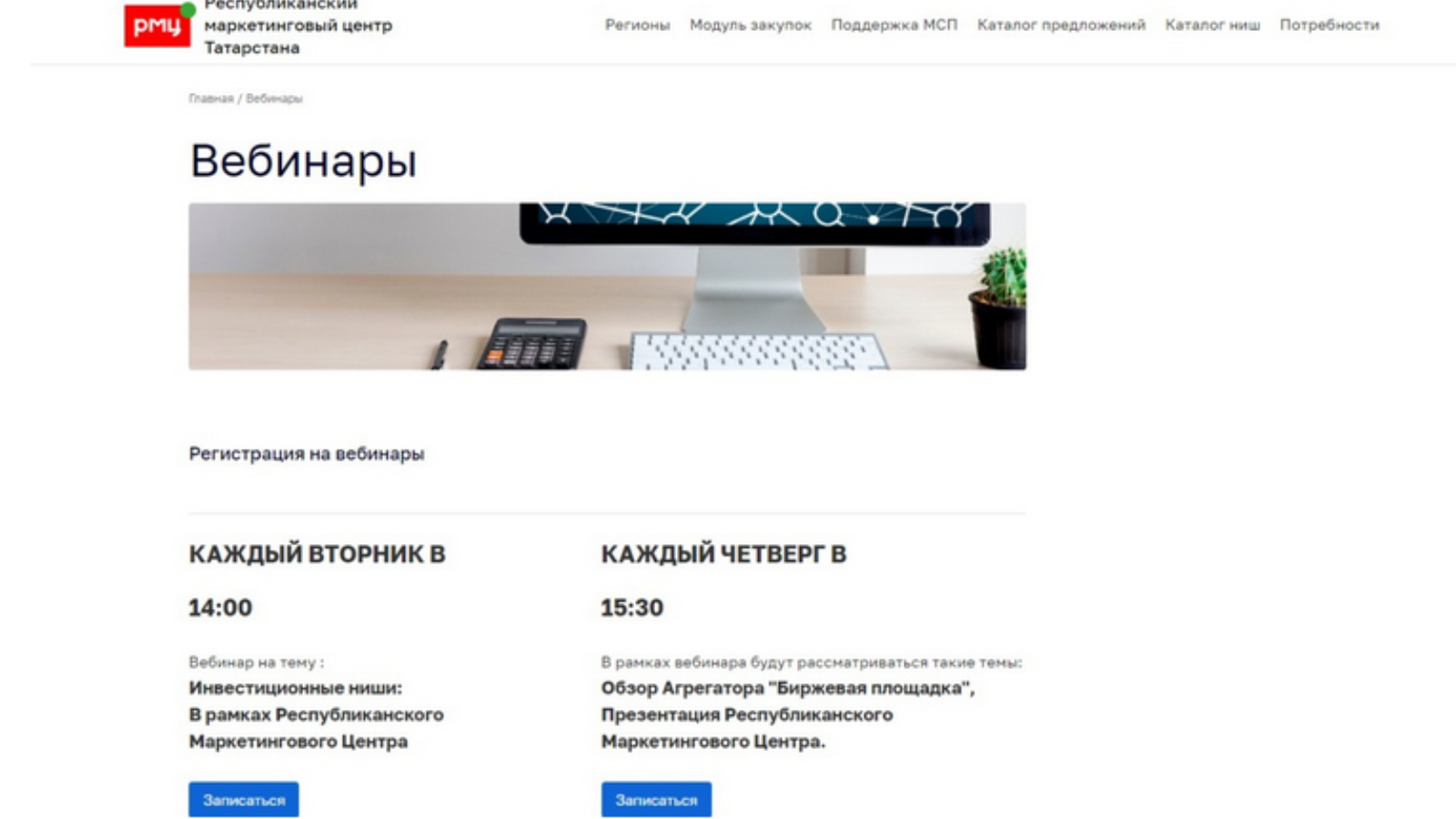 Һәр сишәмбе 14: 00 сәгатьтә вебинарга язылырга мөмкин: "Инвестицион нишалар:Республика маркетинг үзәге кысаларында", һәр пәнҗешәмбе 15: 30 сәгатьтә вебинар кысаларында мондый темалар каралачак: "Агрегаторны күзәтү "Биржа мәйданчыгы", республика маркетинг үзәге презентациясе."