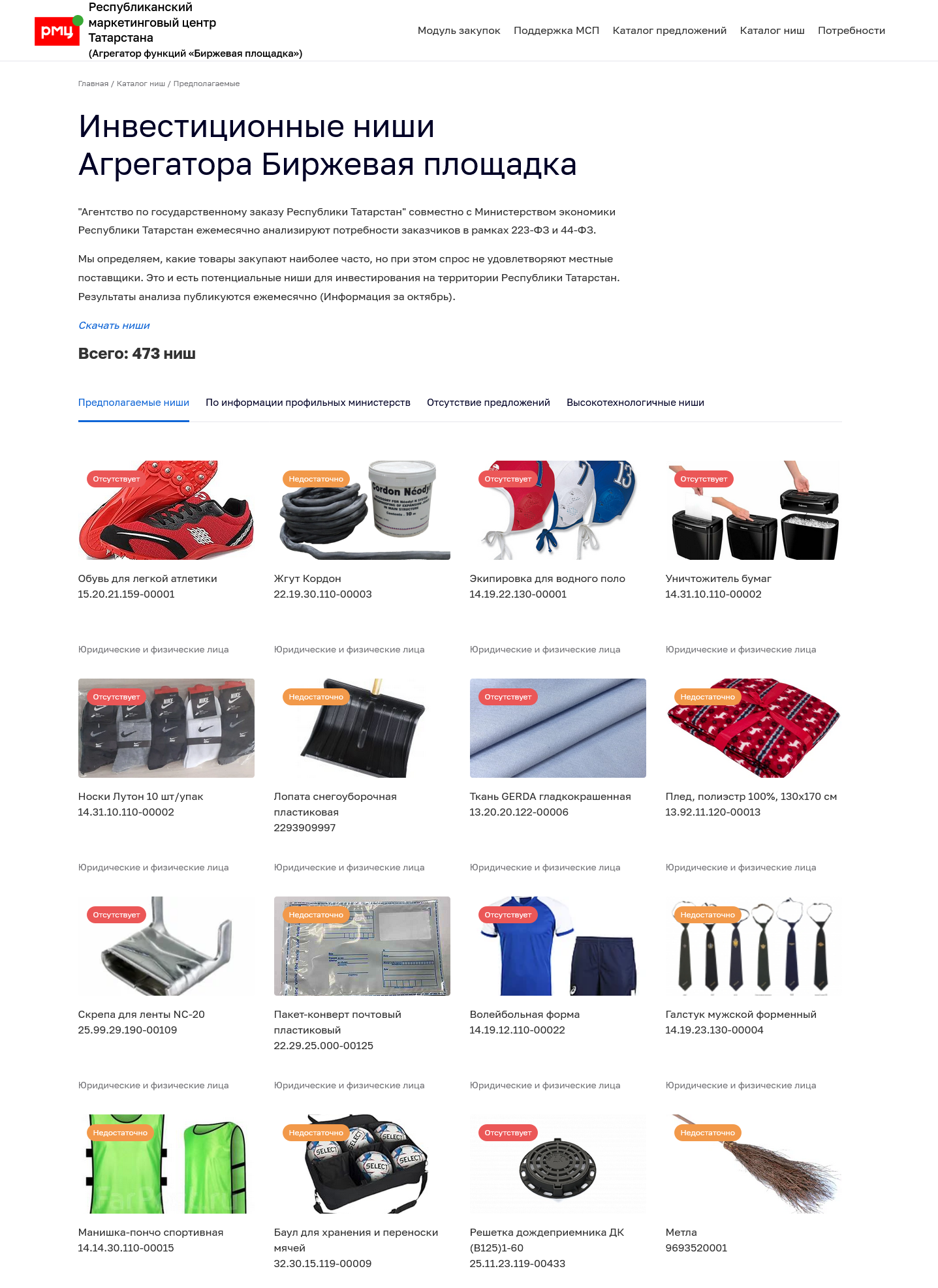 Кирәкле продукция, Татарстан Республикасында җитештерелми торган продукция яки җитәрлек күләмдә җитештерелми торган продукция буенча инвестицион нишаларhttp://rmcrt.ru/niche.html