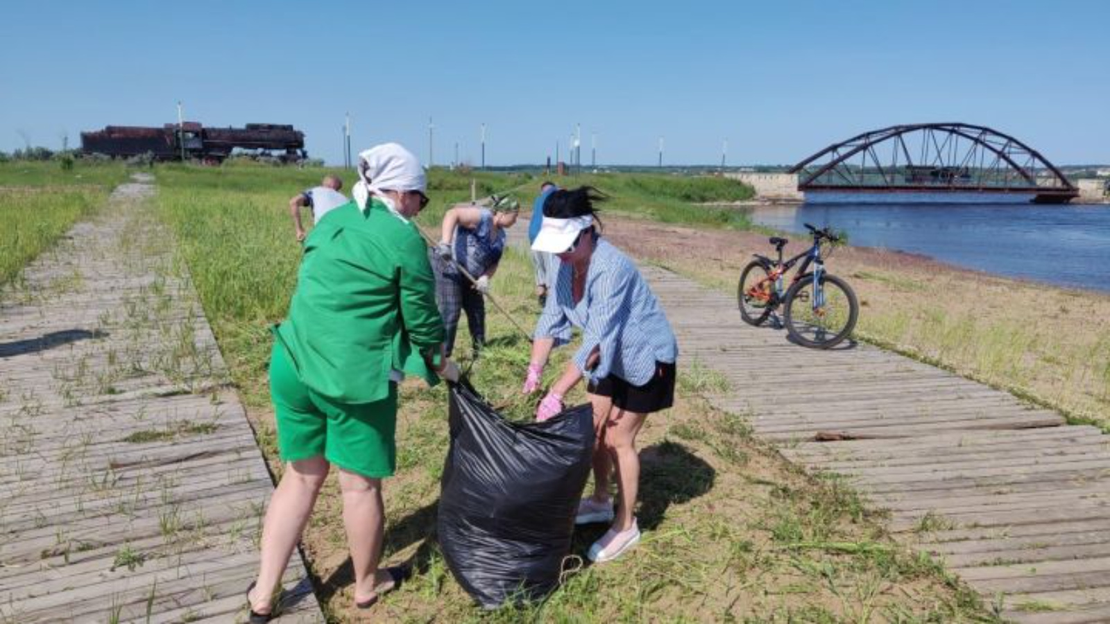 Бергәләп эшләп, алар пляжны үскән үләннән чистарталар, аны тримерлар белән чабалар һәм чүп-чар җыялар.