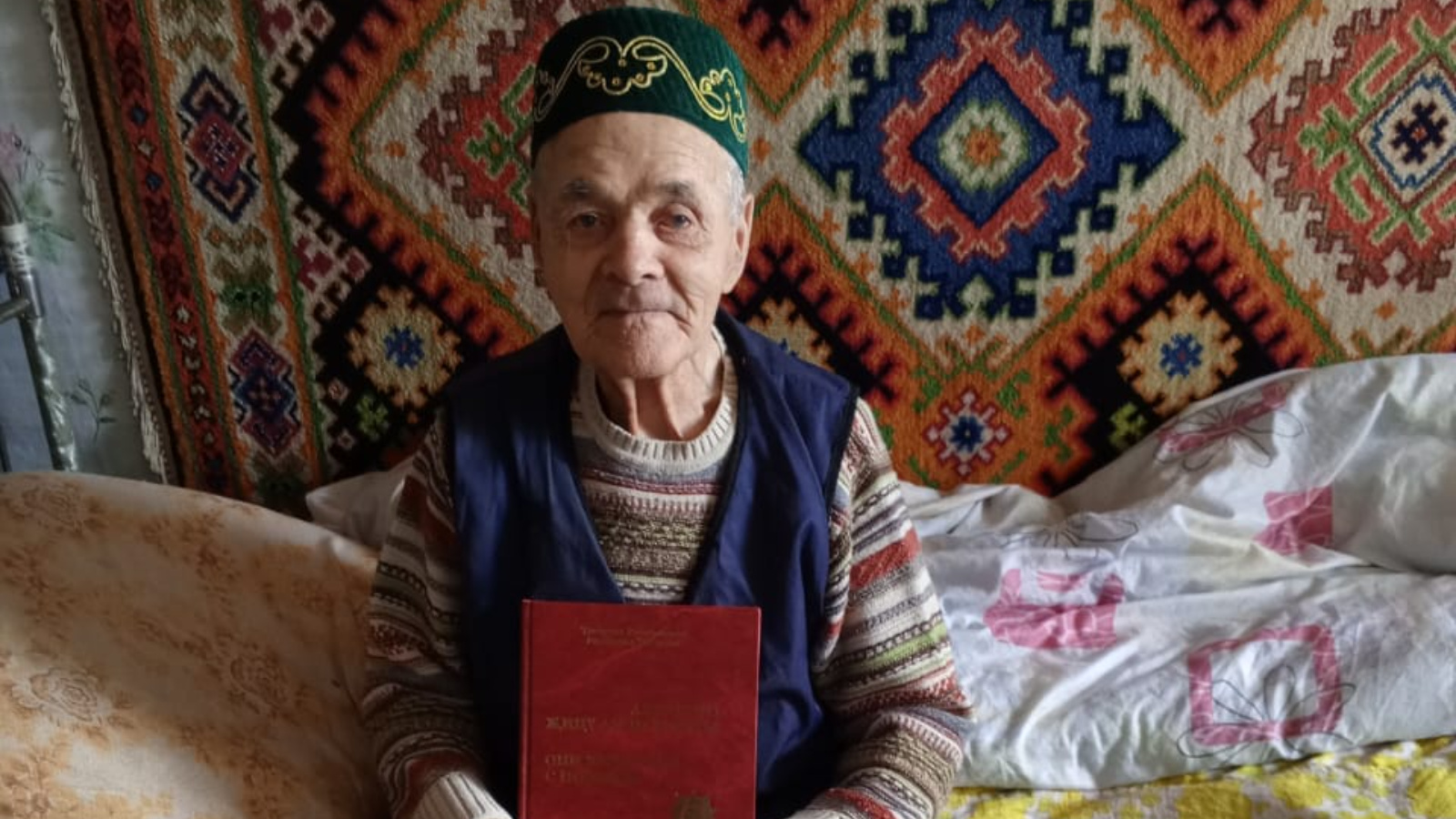 95 яшьлек юбилее белән котлауларны хезмәт ветераны, тыл хезмәтчәне Галиуллин Муллахәсән Зиннур улы кабул итә.